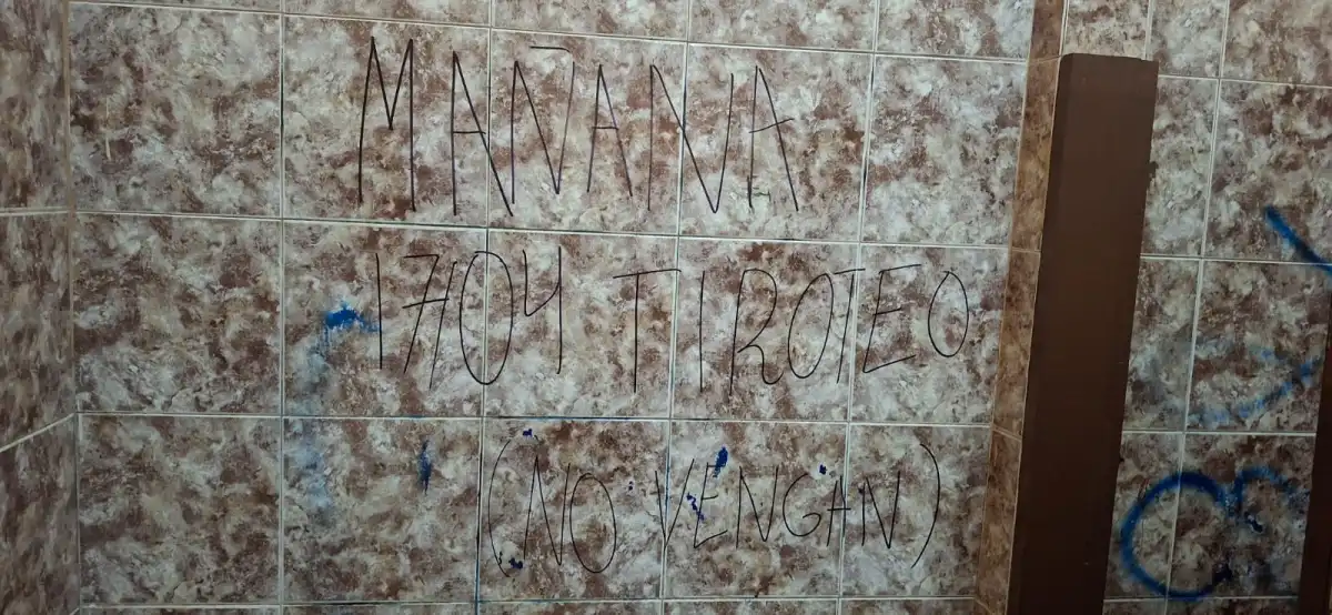 La situación se originó este jueves (16), cuando estudiantes que realizaban actividades proselitistas para el centro de estudiantes descubrieron un escrito en la pared de un baño. El mensaje, realizado con pincel indeleble, advertía textualmente: «Mañana 17/04 habrá tiroteo, no vengan». El hallazgo fue reportado de inmediato a la dirección general, que procedió a realizar la denuncia ante la Comisaría N° 13 del barrio Guaraní de Pedro Juan Caballero.