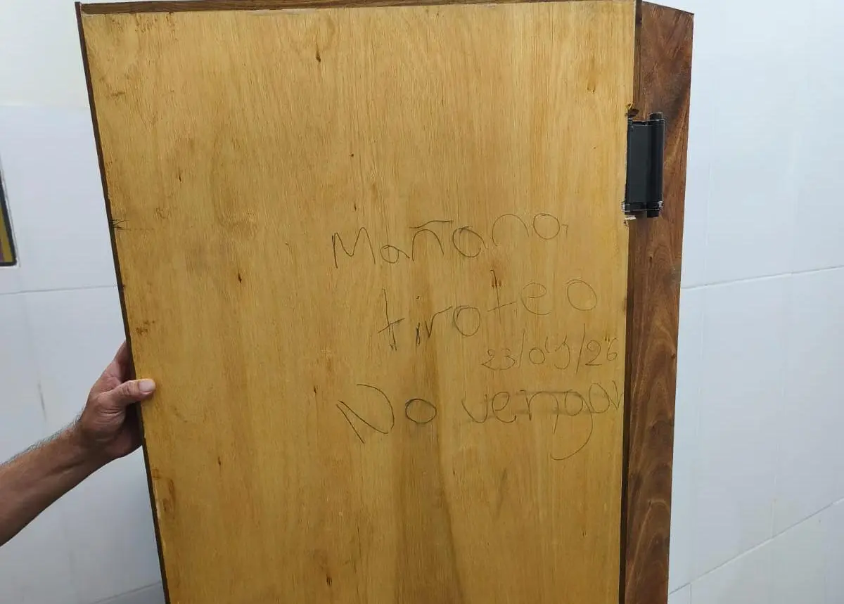 Una vez en el lugar, los uniformados verificaron el sector de los sanitarios de uso femenino, donde constataron un escrito en la puerta. El mensaje advertía textualmente: “MAÑANA TIROTEO 23/04/26 NO VENGAN”, lo que generó una alerta inmediata entre las autoridades educativas y los padres.