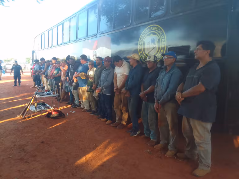 Los 29 imputados por el intento de invasión a la estancia Lusipar permanecen detenidos en la Comisaría 18 de Santa Rosa del Aguaray, donde comenzaron a prestar declaración ante el magistrado tras la presentación de los cargos.