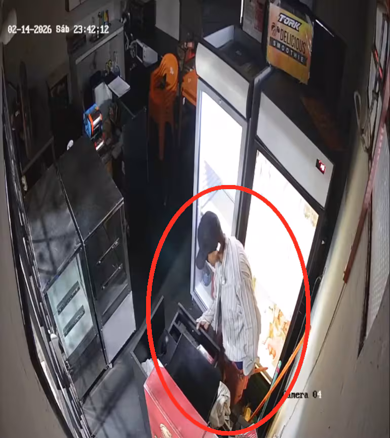 Imágenes de circuito cerrado registraron el momento en que un delincuente ingresó a un local gastronómico del barrio Reducto, en San Lorenzo, durante la madrugada del sábado. El sospechoso se llevó una licuadora y alrededor de G. 500.000 en efectivo. La Policía analiza los videos para intentar identificarlo.