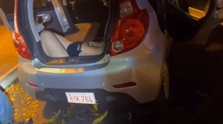 Los uniformados verificaron el automóvil en que los sospechosos llegaron al sitio y descubrieron en la cajuela de este a una mujer aparentemente inconsciente.